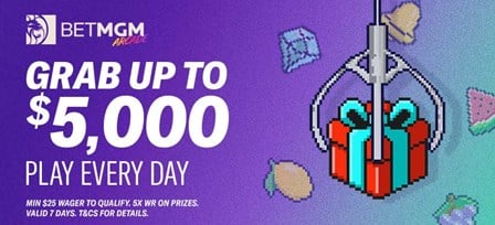 Unlock the Arcade Claw Machine by wagering $25 on any game! Step up, drop the claw, and you could walk away with up to $5,000.
