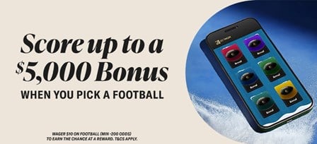 Turn a day on the gridiron into a night at the casino. Bet $10 or more on the NFL, then pick a football and you’ll get a casino reward. Every pick wins!